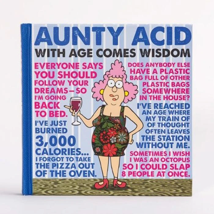 You know when someone says ‘The other day” and it can mean anytime between yesterday and last year? Or they did all that stupid stuff before the invention of the internet. Well you know that means with age comes wisdom. Oh the things you could learn. Aunty acid can certainly teach you a thing or two about the geriatric stage of life. She’s got the knick knack, know how on all things wisdom to get you through the older years. If you’ve got a plastic bag full of other plastic bags somewhere in your house it’s definitely worth the read.