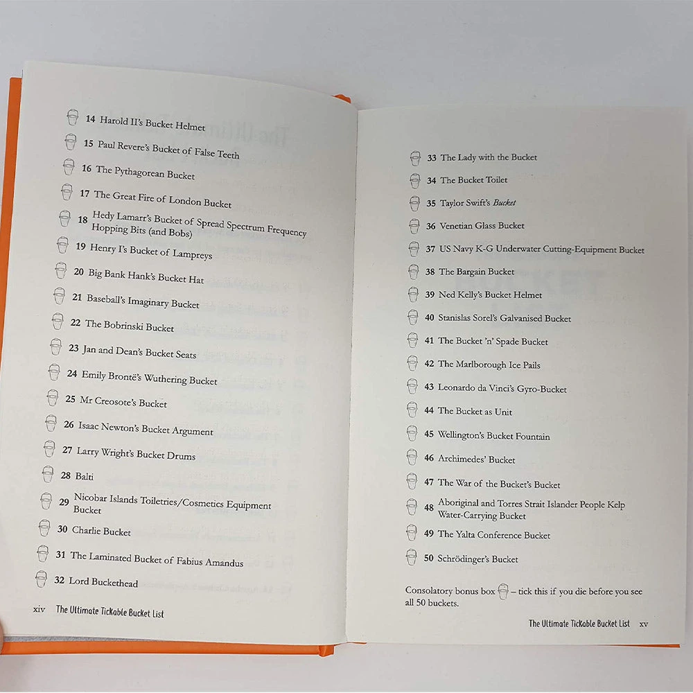 Because this is actually a list of buckets! It’s a list of the 50 most famous and impressive buckets around the world. And if you don’t happen to see them all before you die, there’s a consolatory bucket box you can tick.