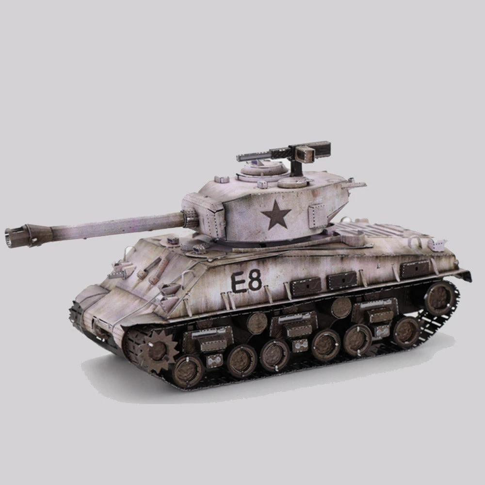 This impressive piece is based on the design of Sherman tanks used by the US and their allies during WWII. It comes with four sheets of pre-cut stainless steel pieces. Simply pop them out and piece them all together to create your own model tank!