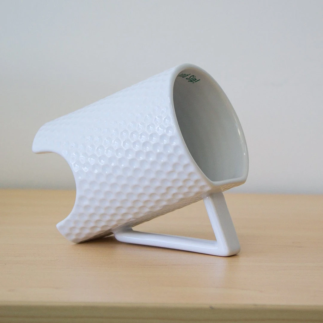 Also, mug’s handle allows you to prop up the mug, making the mouth of the mug perfect for practising a chip or two!