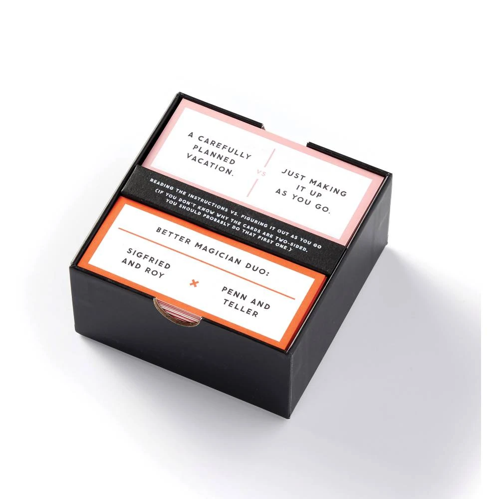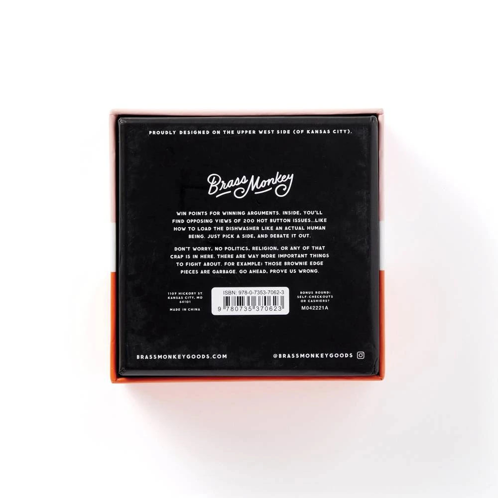 Politics, religion, and other highly debated topics are left out, so don’t you worry – it’s way more fun to debate other topics like how to load a dishwasher! For a casual game, everyone is welcome to debate. Pick a card at random and announce it to the group. Then discuss your answers!