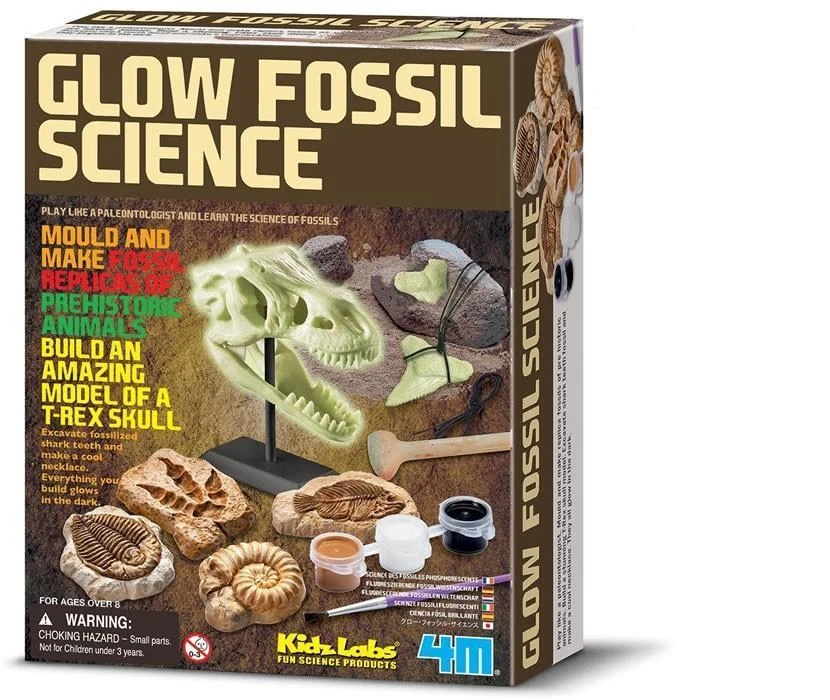A brand new science kit from 4M! Your future palaeontologist will learn the science of fossils as they mold and make fossil replicas of prehistoric animals, plus they’ll build an amazing model of a T-Rex skull. Excavate fossilized shark’s teeth and make a cool necklace, paint is included, and everything glows!