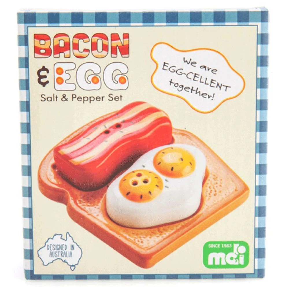 The little strip of delicious crispy bacon is one shaker, and the tasty double yolk egg is another! They sit mouth-wateringly in their little toast tray for an adorably kitsch decor statement.
