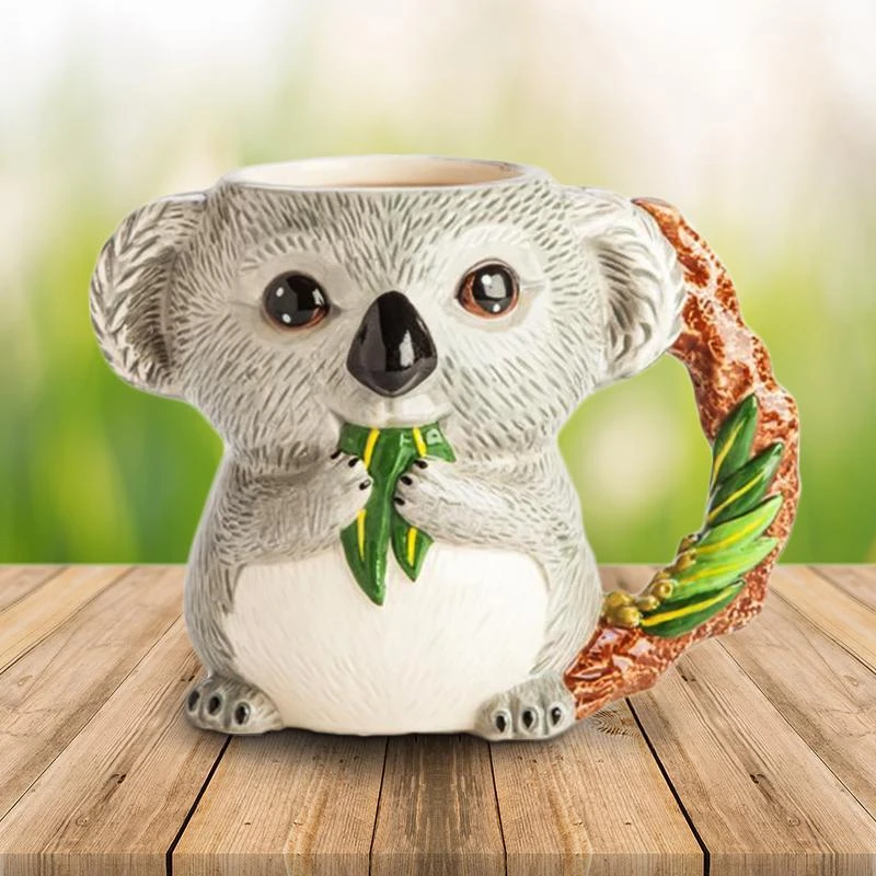 This mug has all the koala-ifications to be the most adorable mug anyone has ever laid eyes on, ever! Its sculpted design and curved branch handle are eye-catching and unique; its generous volume will ensure this mug becomes the go-to coffee and/or tea receptacle in the household.