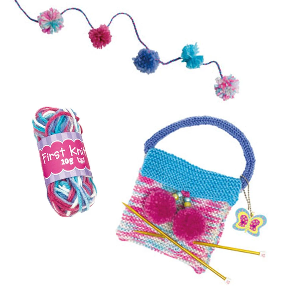 They’ll get to make an awesome knitted bag, purse and a funky pompom scarf. It includes 8 balls of wool in beautiful shades of pink and blue and some keyrings and beads to dress up your hard work.