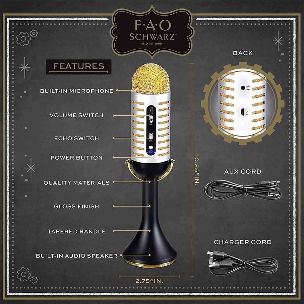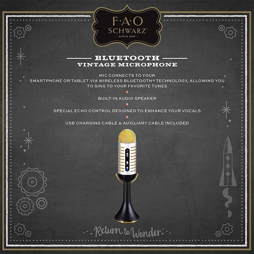 BLUETOOTH RECHARGEABLE WIRELESS VINTAGE MICROPHONE | F.A.O SCHWARZ