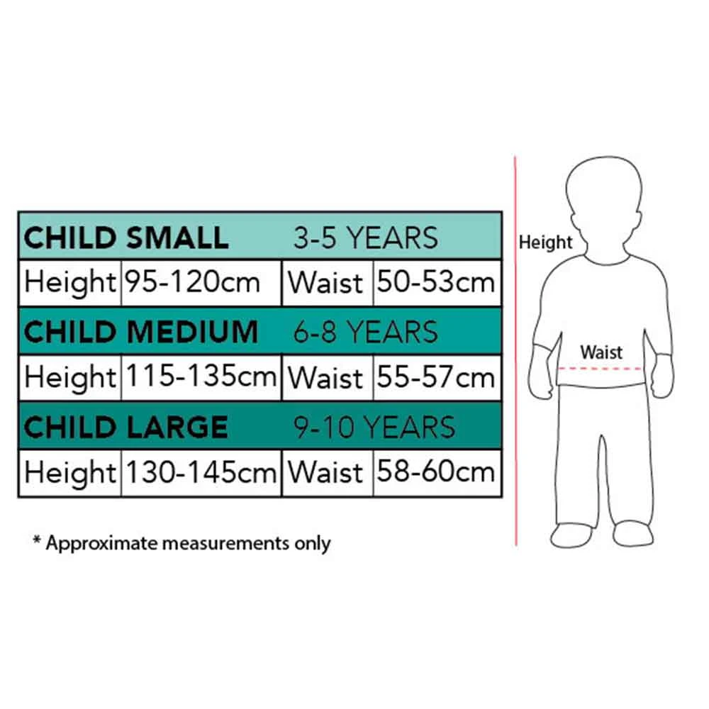 - Sizes: 3-5 years, 6-8 years, 9-10 years (see size chart for more information)