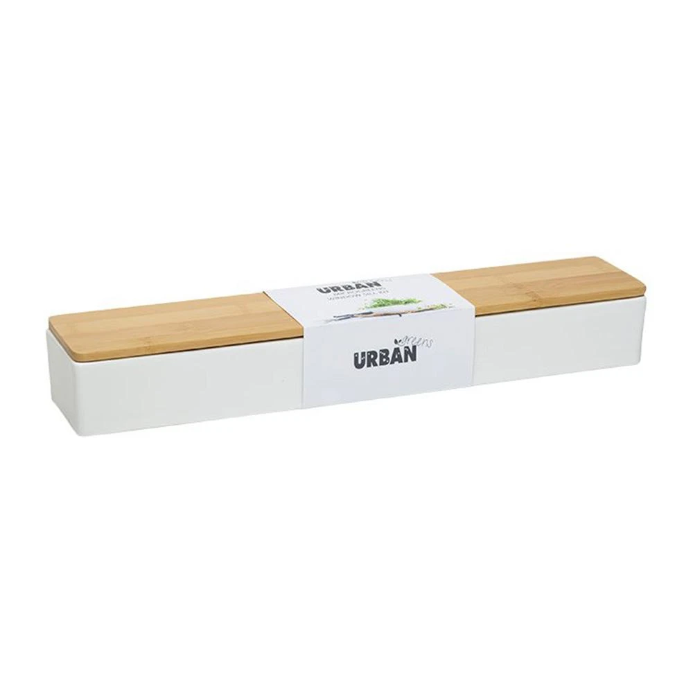 This kit contains a porcelain planter box with elegant bamboo drip tray, propagation mix, Basil seeds. Parsley seeds and Chive seeds, and instructions and hot tips for growing your own crop.