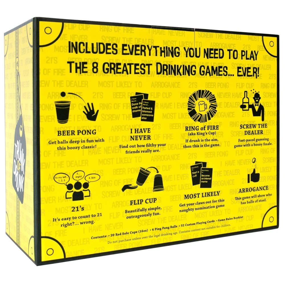 Get your party started with not one, not two, not three, but EIGHT of the WILDEST, WEIRDEST, most WONDERFUL drinking games you’ve ever wrapped your booze-swilling lips around! Inside your Trunk of Drunk lies everything you need to get your drinking games going.