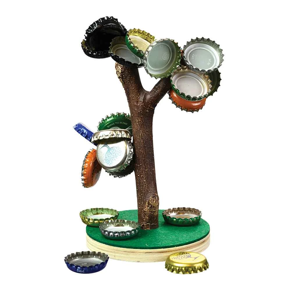 Now you can make those bottle caps into a thing of beauty with this magnetic tree! It has 3 magnetic branches that can hold your bottle caps to make it look like the tree is blossoming. It includes 12 bottle caps to get you started.