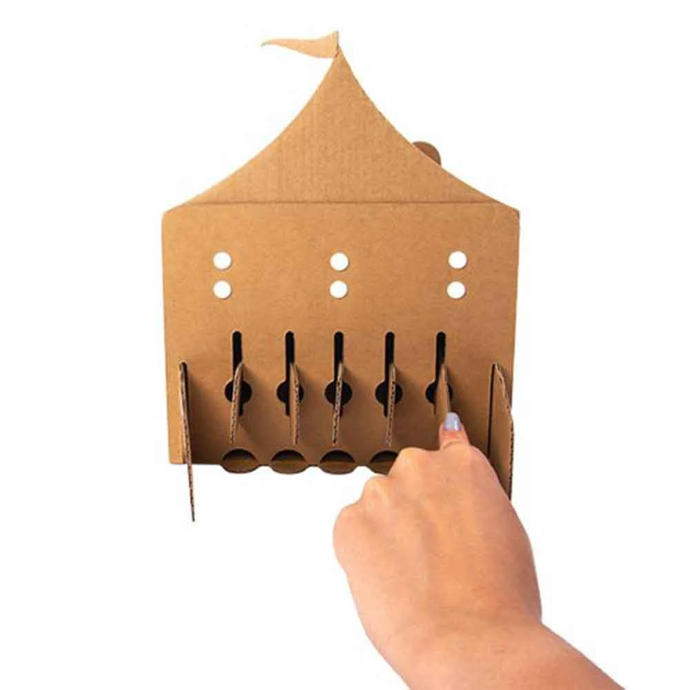 You can make this game for your kitty in about 30 minutes, piecing together the pre-cut cardboard parts.