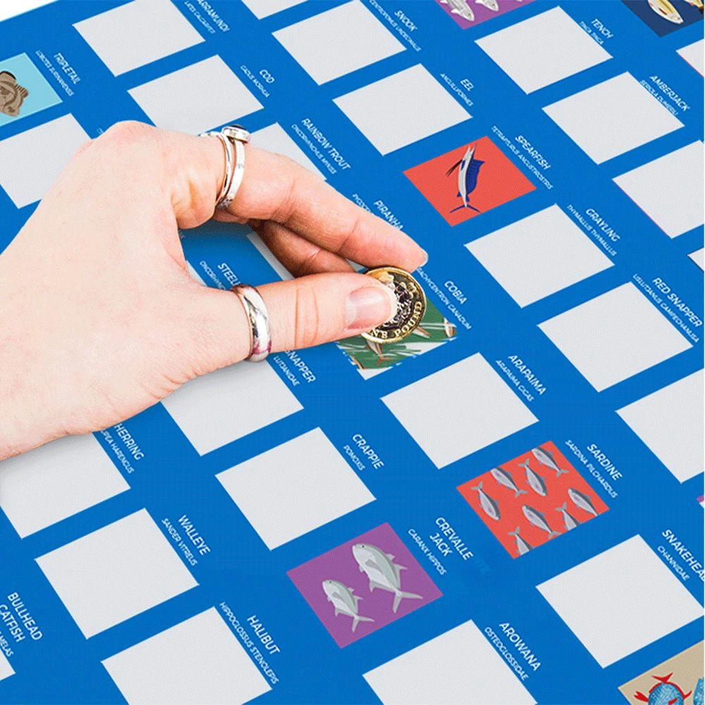 This poster has 100 different types of fish, each with an illustration covered by a silver scratch-off. Scratch away as you reel them in and let everyone know what a catch you are!Â