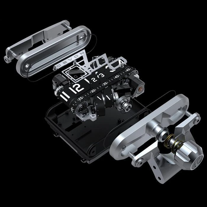The Devon Works Tread watch is arguably the most cutting edge watch made today, a timepiece of striking visuals and technology. The Tread 1 Watch features four internal 2-micron thin belts that spin within the case to display the time. It’s powered by a lithium polymer rechargeable cell that is charged by wireless induction. This electric system runs the belts that are kept in tune with an optical technology. Add that all up, and you have one of the most technically advanced, visually stunning watches ever made. The Devon Works Tread 1 Watch was designed by a California aerospace company, a group that is quite comfortable with fitting square pegs through round holes. This watch is a prime example of their technical prowess.