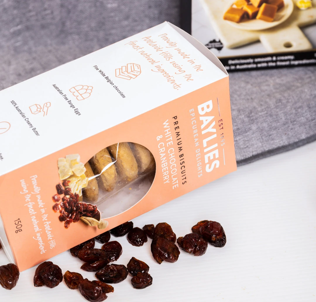 150g Baylies Premium White Chocolate & Cranberry Biscuits,