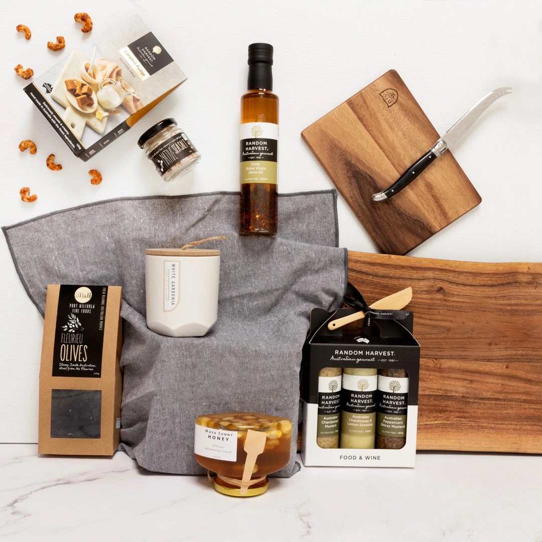 Snacks get a look in too, with rich creamy caramel fudge or delectable Thai sweet chilli cashews. Create the ultimate charcuterie board or cheese platter with juicy olives or a drizzle of raw macadamia crunch honey over some brie. You’ll even get a nice acacia wood board and a high quality French Laguiole cheese knife to help!