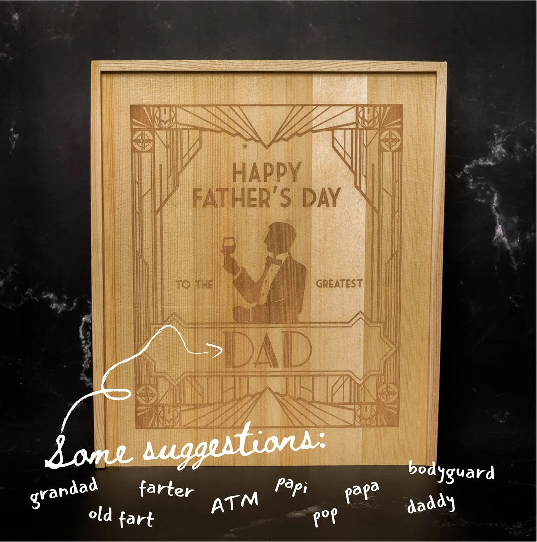 Just to make sure Dad knows he doesn’t have to share, there’s some cosy socks for your “Rad Dad”! And the whole set comes thoughtfully packaged in a bespoke wooden box with a Gatsby-esque art decor design that you can customise with Dad’s name.