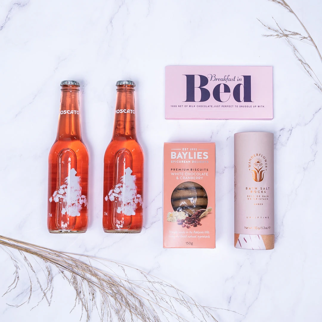 This gift hamper includes all her favourites. There’s 2 x 275ml bottles Innocent Bystander Moscato made locally in Healesville Victoria to enjoy after a long day. Maybe pour yourself a glass while you soak in the tub with the luxurious Himalayan bath salt rocks. They’re cruelty free and vegan friendly, with an uplifting and relaxing amber scent.