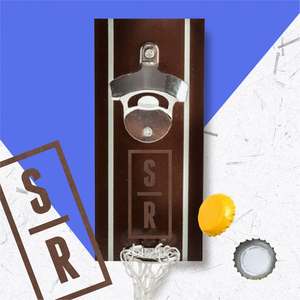 PERSONALISED BASKETBALL BOTTLE OPENER MAGNET WITH INITIALS