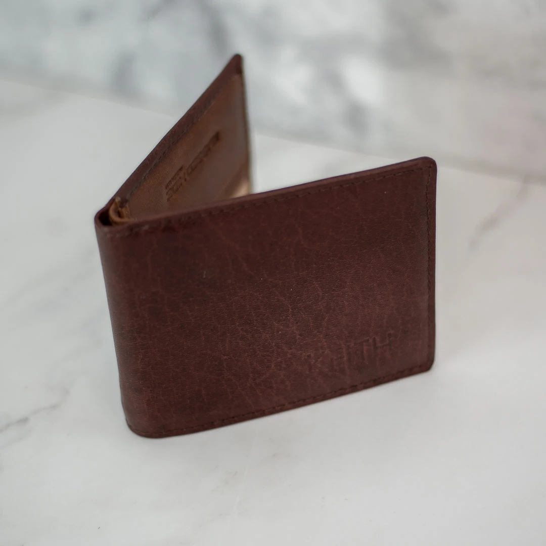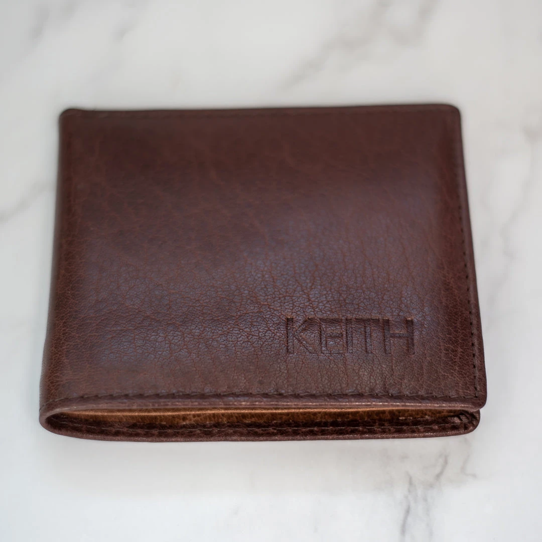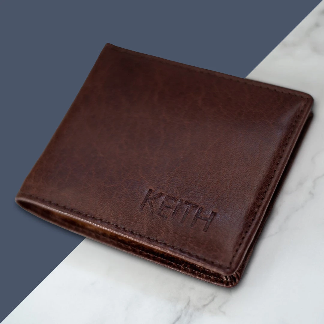 Treat that special someone to something more fitting their class and style with this impressive genuine leather wallet. The exterior is a rich reddish brown colour, like expensive brandy or mahogany. You can include their initials or name embossed in the bottom right corner to really make it theirs!