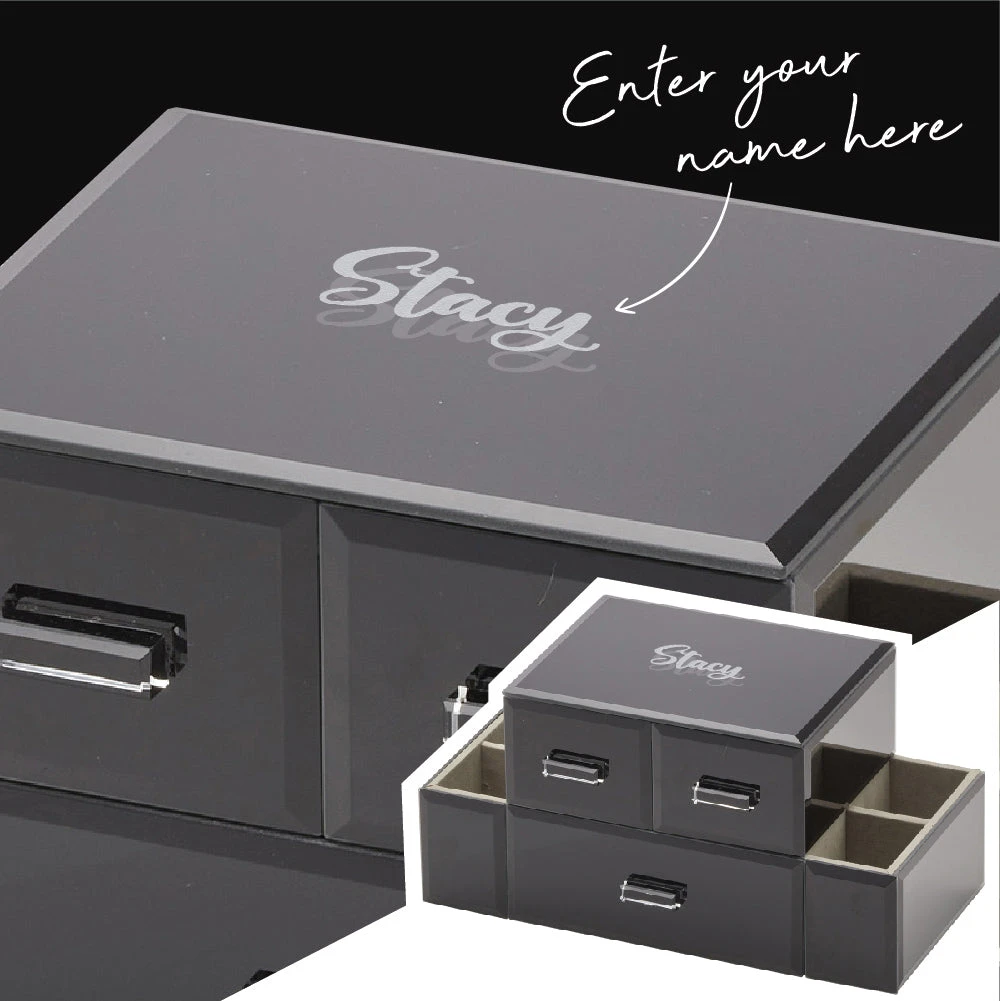 PERSONALISED BLACK VANITY JEWELLERY BOX CADDY